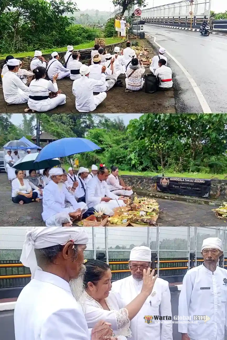 BADUNG, WartaGlobalBali.Id – Di bawah langit Desa Plaga yang pekat namun penuh keteduhan spiritual, sebuah ikhtiar kolektif untuk memulihkan keseimbangan jagat raya sukses digelar. Komunitas spiritual "Manggala Taksu Agung" baru saja melaksanakan Ritual Pangerestiti Jagat bertajuk Pakelem di Jembatan Bangkung, Kabupaten Badung, Bali, pada Kamis (19/12/2024). Ritual sakral ini bukan sekadar seremoni, melainkan aksi nyata sebagai respons atas meningkatnya frekuensi musibah, termasuk banjir di berbagai wilayah Bali dan insiden bunuh diri di lokasi jembatan yang ikonik tersebut.