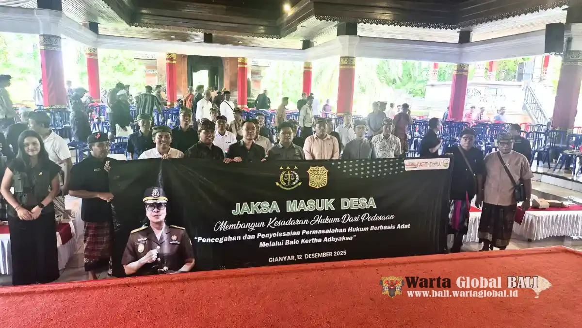 Kejaksaan Tinggi Bali melaksanakan kegiatan Penerangan Hukum 13/12/2025 dengan tema "Pencegahan dan Penyelesaian Permasalahan Hukum Berbasis Adat melalui Bale Kertha Adhyaksa" di Bale Budaya Kabupaten Gianyar. Acara ini dihadiri oleh para Camat, Bendesa Adat, dan Kepala Desa dari Kabupaten Gianyar.