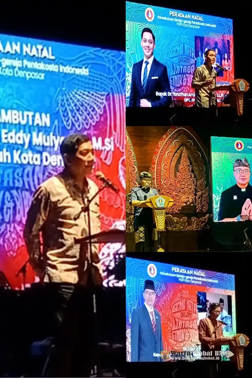 Denpasar, Wartaglobalbali.id – Rabu, 14 Januari 2026 menjadi malam yang istimewa bagi umat Kristiani di Kota Denpasar. Persekutuan Gereja-gereja Pentakosta Indonesia (PGPI) Kota Denpasar sukses menggelar Perayaan Natal Akbar yang mengusung semangat inkulturasi mendalam, memadukan sukacita Natal dengan keindahan dan kearifan budaya lokal Bali. Acara bertajuk “Gema Natal dalam Lintasan Etnik dan Budaya” dengan sub tema “Natal Ring Jagat Bali” ini berlangsung khidmat dan meriah di Darma Negara Alaya, Denpasar Utara.
